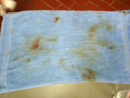 ^ ooo. junjie`s bloody towel. lols` see how much he bleed .. xP