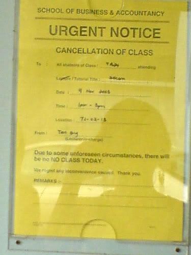 ^ LOLS!! class cancelled !! like. how nice lahs!! muahahs` luckily we went earlier and saw this earlier. x)