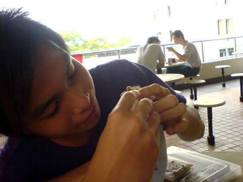 ^ stupid ZZ !! my hand was kena "sandwich-ed" inside him file lahs. purposely sias. but i hit him hard on his legs! muahahs. *revenge* xD