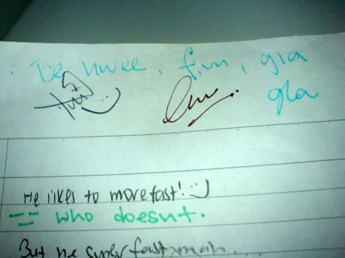 reached SP there was still super early lahs. den bel returned/gave gla alot of things and there was poker cards!! lols` so we went over tuh kfc there tuh play the fast fast game we played during tb24 chalet. hahah` me and zihui are the fast oness!! keke. shall not talk bout gla and pam! heheh. jkjk. alrites.. and then, the match started. ( oh yah!! didnt take pic with shermian huh .. =x )