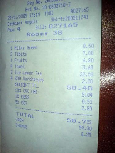 ^ gosh. da receipt. the coupon was of no use lah actually. so ex can. i tink kbox is so much better. hmpffs~ 4 person..