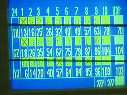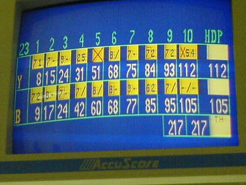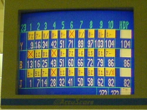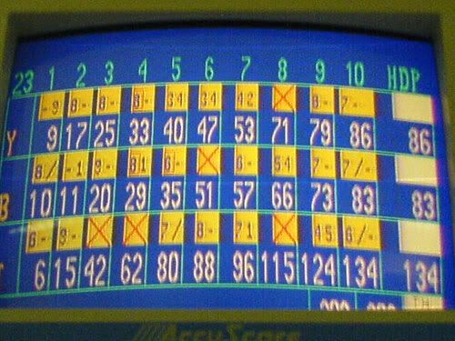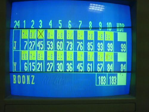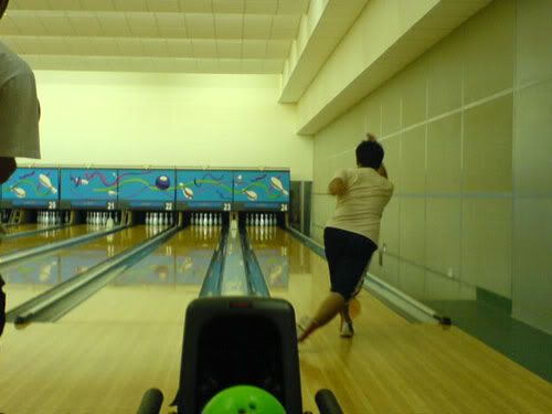 hmms. den we played two games and some played three .. very very very lousy today. so sad. haha` and i found out it`s kinda hard tuh bowl in skirt. serious lohs. not finding excuses. hahah` hmm yupps. super lousy results nahs. 2nd game tt first strike was NOTHING lohs. haha` i got NO spares at all. *faint* haha`