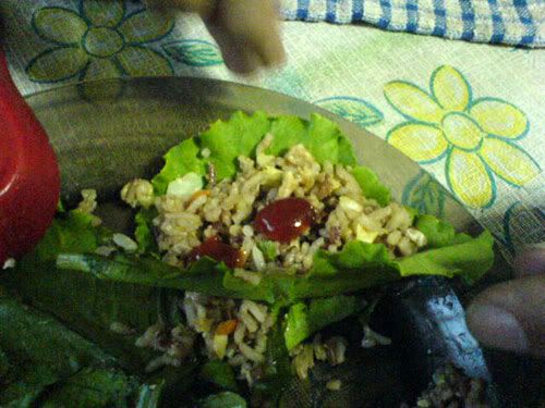 ^ daddy trying tuh wrap the rice in the veggies. =.=