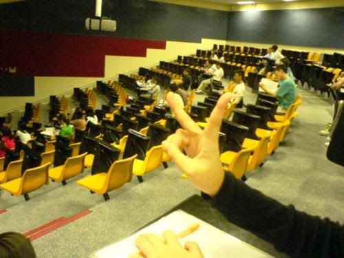 went for morning lecture as usual. one of the door is locked lahs. made us tink no lecture sias. LOLS! den went the other one can .. and there was like super little ppl lahs. poor OB. is it really tt bad? hahah` well. ok. it was boring. me and gla watched wang zi bian qing wa on thea`s com. hahah` miracle-ly, all FOUR of us brought lappy! x)