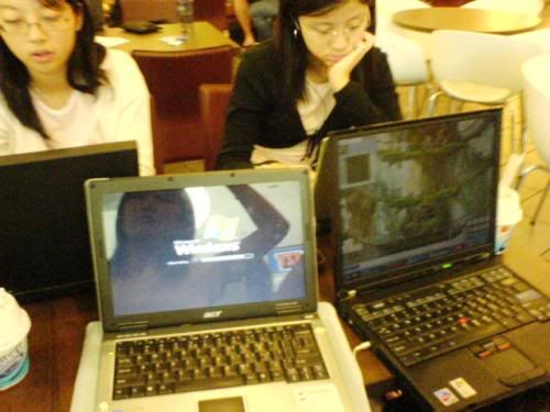 after lecture which was still quite early, we went canteen2 tuh eat. and then charged out lappies. den took cab down tuh KAP at ard 11.30? lols` cos we wanted tuh maple. hahah` in sch too bored anw. had mcflurry again. my fav! x) alrites. den maple. wanted tuh PQ but in the end failed. so continue find place tuh train. hahah` then ... my battery went flat and lappy went hibernating. x( followed by fion, den gladys .. althea`s lappy STRONGEST! haha`