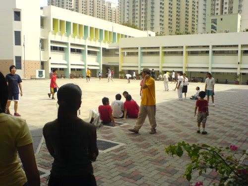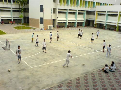 oh did i mention those alumni ppl were like .. very old lahs. the biggest batch which went back was, obviously, OUR class of 2004 batch ya? but there were ppl from like class of 1973 and 1975? wWwooOowWw~ x) hmm. den da guys signed up for some games - soccer and captains ball. then we went down tuh canteen there.