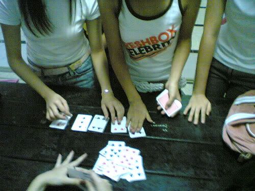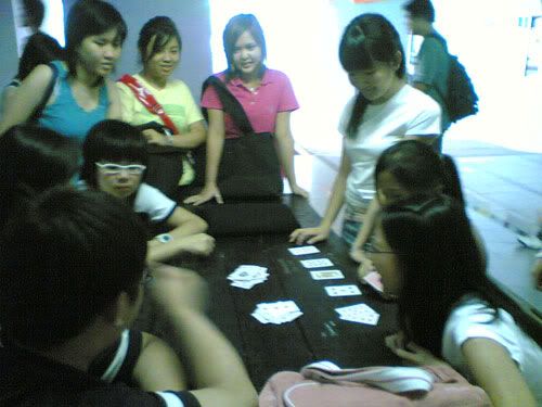 alrites. den bsta ah. bwg sias. tt teacher is super guai lan one nors. den very bo chap also. like u do ur work anot he also dun care. u go in, he immediately start le. and then at the end of the lesson he just say, "anymore qns? if not then tt`s all and you can leave now!" or something like tt de. really dots loh. have this kinda teacher. well. then had another 45 min or so, went down level one the benches there and started playing the game again. i brought two stacks of cards tuh sch lahs. LOLS!