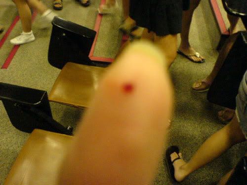 ^ freak. i slpily took the wrong side of my pencil and pressed HARD. poke through my thumb. sobs.