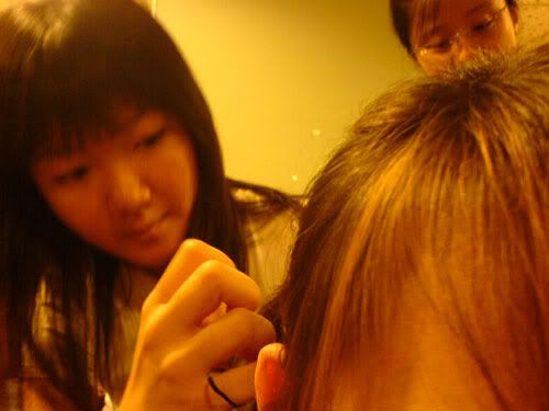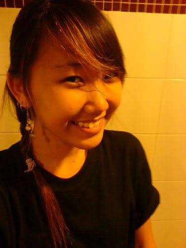 ^ den went toilet with fion. she took her hair down lahs. i didnt cos dui bu qi adeline ah. she spent so much time on our hairs. hahah! =D