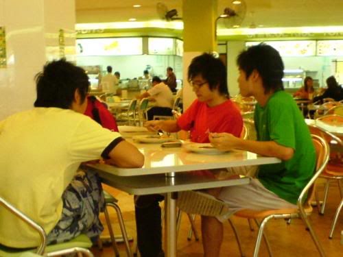 ^ mingwei, zz and weishu on another table. haha` TRAFFIC LIGHT!! x) red green and yellow. lols`