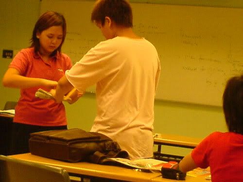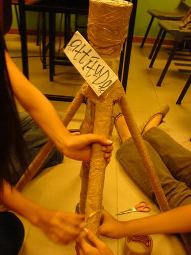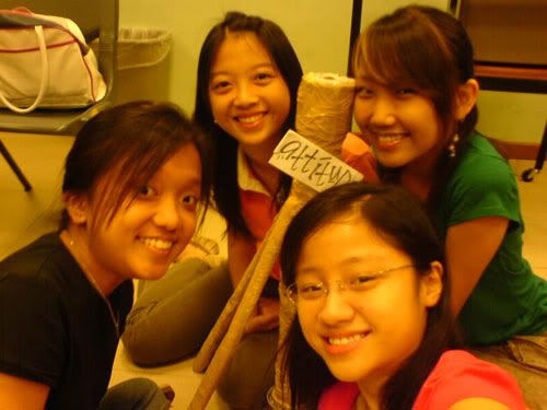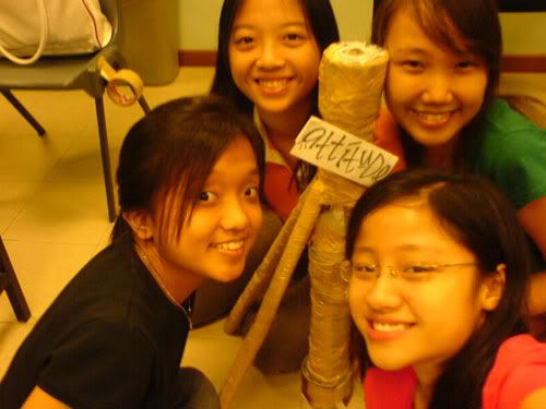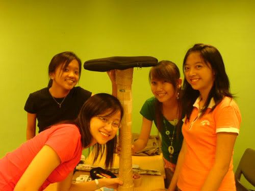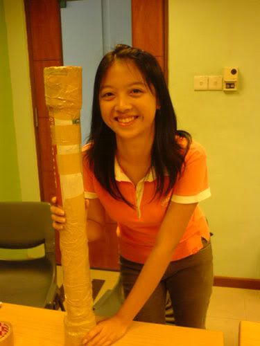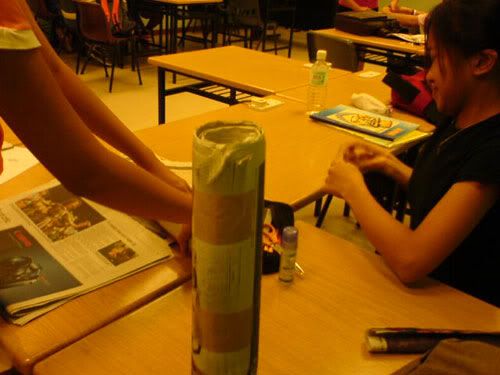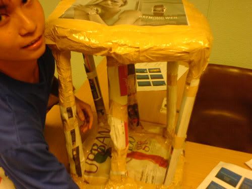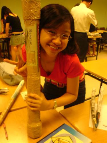 went OB tutorial early morning. was told tuh bring old newspaper and stuff. den i brought also, lappy, shoe bag, clothes. faintts. so so so so so HEAVY lahs. can die. >.<* anyways, the whole 2-hr tutorial was like spent on "teambuilding" thingy ahhs. was asked tuh build the strongest, tallest tower. LOLS! with just old newspaper. den my grp only me and thea brought nahs. the two lazy pigs nv bring. haha` den we took some frm eugene and well, did up our tower! enjoy the picturess ... =))