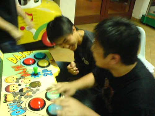 ^ went over tuh the arcade again. this time made yong ming and jia hao play this game. haha` cos me and pam played till our hands bruise liaos. =x