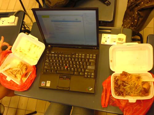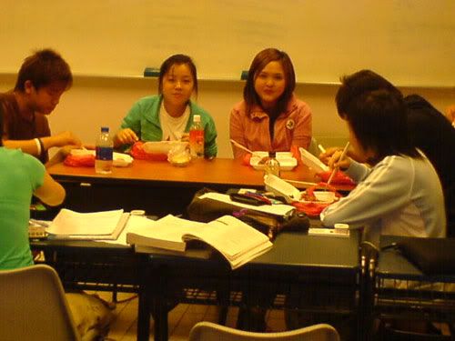 had MIEC tutorial @ 9am again. it`s always so boring cos till now, i realllly nv listen at all during tutorials lahs. =(( and tutorials on tuesday always end early. such a waste of time man. so, at 10am, we are dismissed already. -.-" followed the majority and "da bao" our brunch back tuh class. wahahha` and we ate there, do our ocom stuff till 12pm which is bsta tutorial. =))