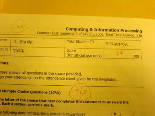 had an early day in sch. cip tutorial. did nothing much. teacher returned us our test papers. got only 39/50. sighhs. but ohh well. at least i didnt fail. erm. no one fail actually.. =))