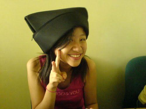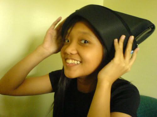 and i tot of new and easy ideas for CATS!! aww.. i regret not thinking of it earlier. nice isnt it.. hahahah! laptop bags as hats! =D