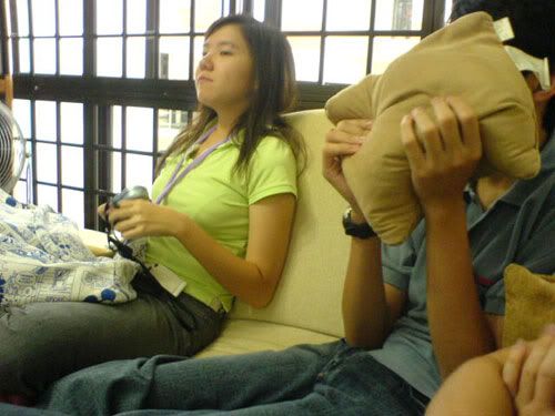 then me and gla went over tuh SP tuh watch da matches. actually didnt really watch ANY full match lahhs. slacked ard their courts. watched a little of bball matches. and it started raining. jitao down there rot nia. and my eyes were REAL TIRED. waited for jas tuh come and waited a little more and went home. i changed tuh shades while going home lahs. how funny.. wearing shades at... 8pm? LOLS!