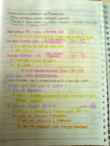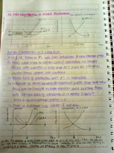 didnt understand the later parts of perfect competition (chap8) but just continued writing and writing. actually more of copying bahh.. tiring. wonder how i`ll die during the final exams. and the dates of the exams SUCKS totally. x(