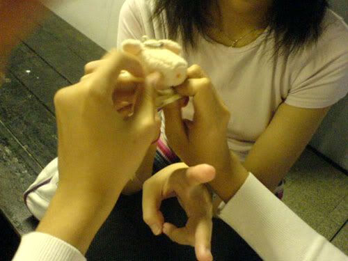 ^ althea dressing up my little piggy (from xx) with the ribbon. lols`