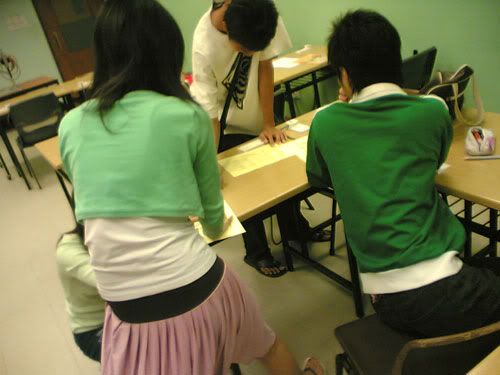 ^ ehh. zhiwei came in and the greeenss started bugging him for signature. some ice-breaker thingy nahs. ( i`m hidden!)