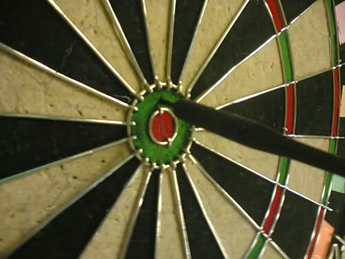 ^ mine!!! erm. near bulls eye.. but still... =(( anw 2 throws was not bad lah hor. my 2 best throws! keke`