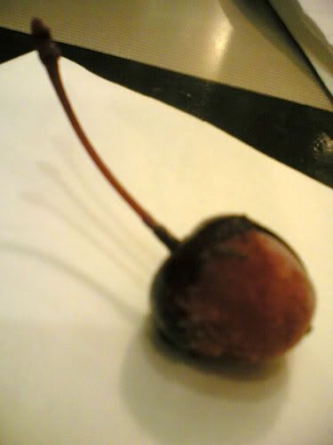 ^ wads this? i`ll tell you. the cherry licked by gladys for the chocolate and cream and threw away giving a disgusted face after she tasted the "anti-biotics" taste. lols` xP