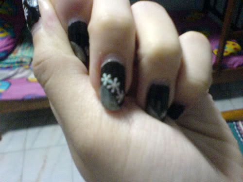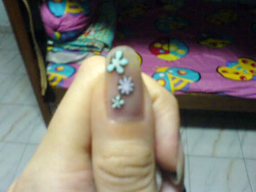 ^ from saturday. last pic before i removed the nail polish. (see my nails already grew le) then .. the flowers remained. -.-" just lame lah.. =x