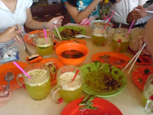 ^ then we went for lunch @ clementi market. look @ our table!! so full rites. we 4 plus beng and mingwei.