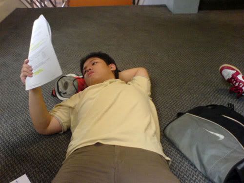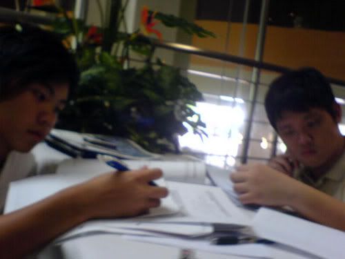 then we went back tuh sch tuh rot our time @ lib till 2pm when the lecture starts. so bo liao can.. 10am+ finish tutorial then next lesson @ 2pm. -.-" anw mingwei and beng were studying for their bstas re-test after lecture @ 5.30pm. was TRYING tuh teach mingwei abit here and there. but tink nothing went in lah hor? =