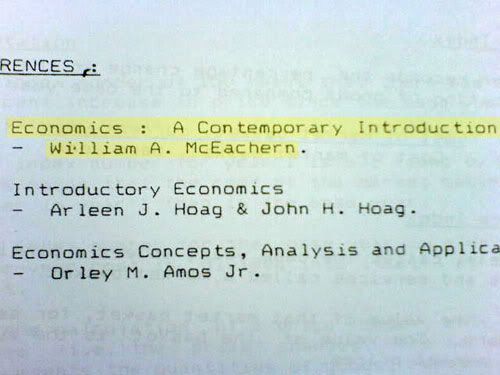 ^ then the reference textbook is also McEachern one. but different rites? cos is economics? anw my macroecons one already exchanged for microecons. =(( shall TRY tuh exchange back at the end of the sem..