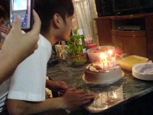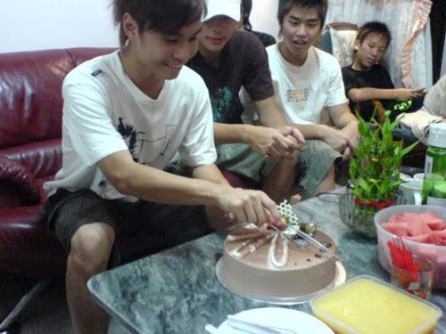 we were quite self entertaining before tt. cos the host didnt entertain us girls. lols` so we played among ourselves! haha` then repeating after words.. lalala` then beng and mingwei came and zz cut his cake. =)