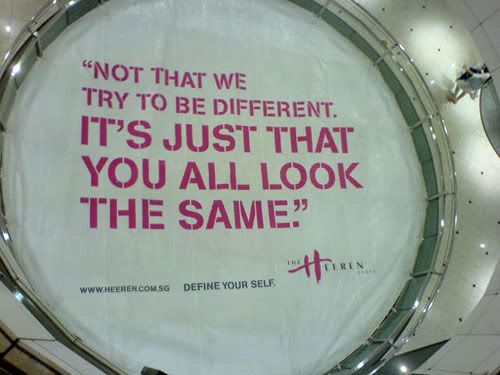 a looooooonnnnng story tuh how me, gla, fion and mw ended up in town. shall not elaborate. went far east, wisma, then heeren. the last 2 stops were FOR flesh imp. fion, mw and beng bought a BROWN top each. hahas` all using fion`s VIP card. ohh well. couldnt find a shirt i really like. so didnt buy.
