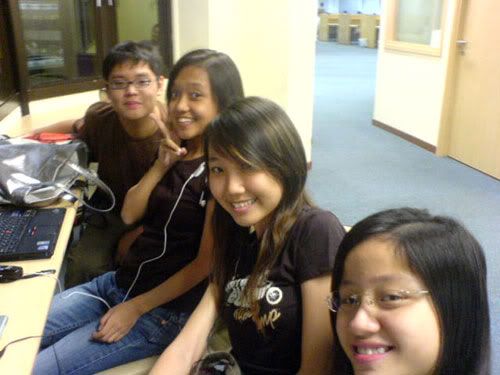 ^ were "spying" @ lib cafe. see who we caught~ zz kq and ws. hahas` actually saw peiying n junyan too. but nt quick enough tuh take a shot. lols`