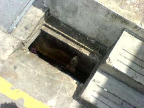 ok. here comes the unforgettable part. haha` was walking walking and didnt see where i was going. was about tuh turn when i suddenly felt myself NOT stepping on anything. roar. the next thing i noe, my left leg was in the drain. a very DEEP one indeed.