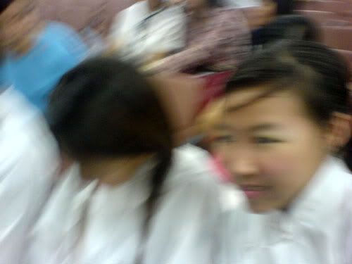then reached there and we were quite embarrassed tuh look @ any other ppl straight in da face. cos it ISNT full-dress rehearsal lahs. but since we tried on makeups, didnt remove it. so.. looked a little exagerrating. lols`