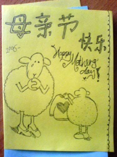 wells. i stayed home the whole morning TRYING tuh customise my desktop. now it`s very messy lahs. xP then meanwhile, i made a card for mummy. copied a picture from the net. come come, grade me! (: