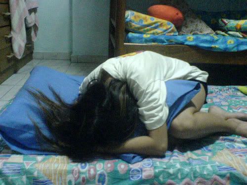 well. we had some girls` talk in da living room and then in my room. as i mentioned, jie didnt come home. so after moving my mattress, we had JUST NICE, 3 spaces tuh sleep on. (: