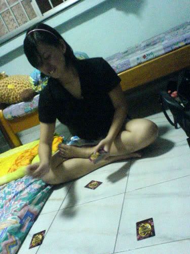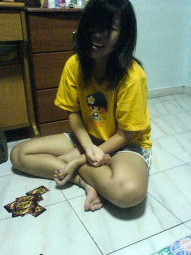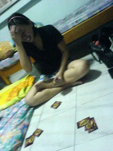then ard i-dunno-wad-time, we started playing cards. dai dee all da way till 2am. -.-" ohh well. then we found out sh is amazingly cute! LOL~ i will tell you why.