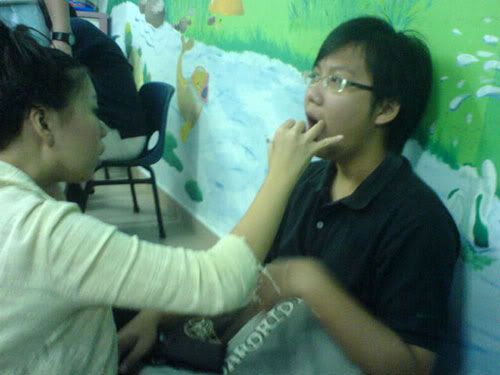 ^ helping the guys with make-up. keke`